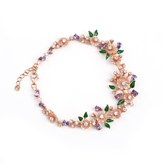 Rose Gold Floral Bracelet with Amethyst and Enamel Accents