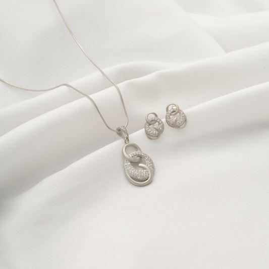 Silver Interlocking Circles Pendant and Earring Set with Diamonds