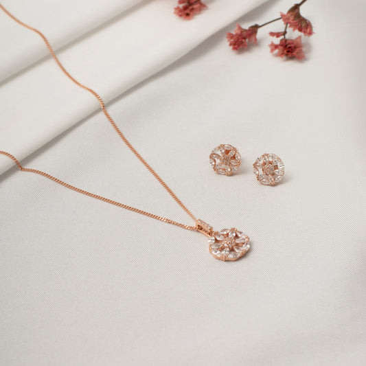 Rose Gold Snowflake Pendant and Earring Set with Crystal Accents