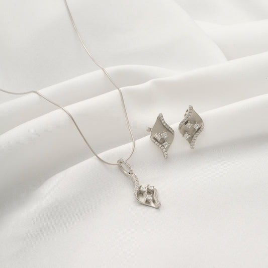 Elegant Silver Leaf Pendant and Earring Set