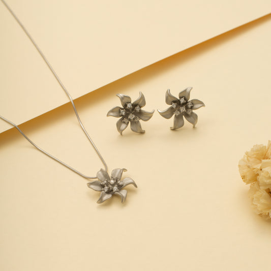 Silver Floral Pendant and Earring Set