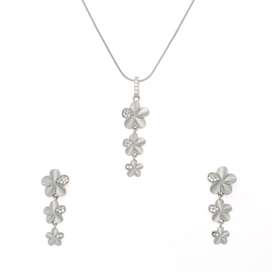 Silver Flower Cascade Pendant and Earring Set