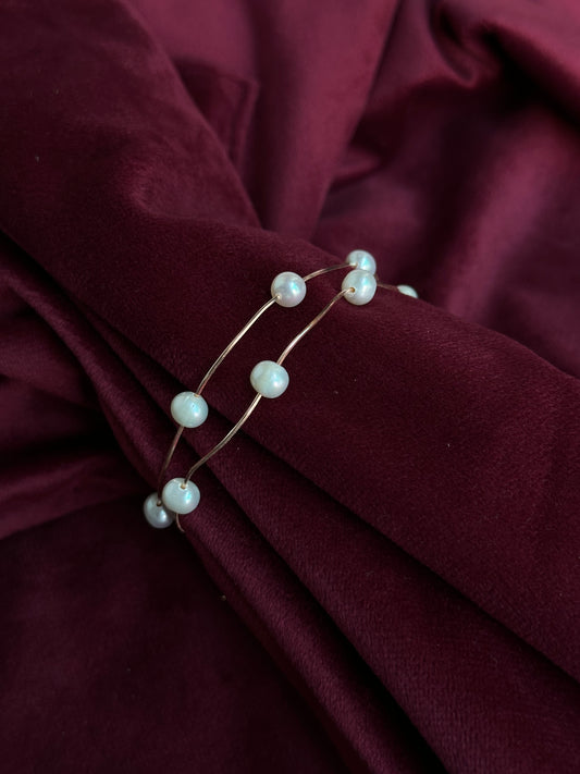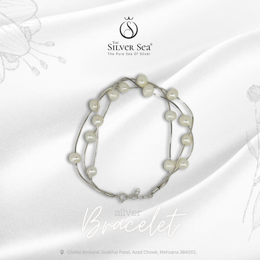 Duo Lumière: Sterling Silver Double Strand Bracelet with Pearls