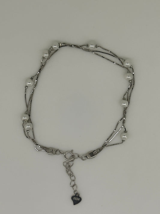 2 Layer SilverGlow Pearl Bracelet