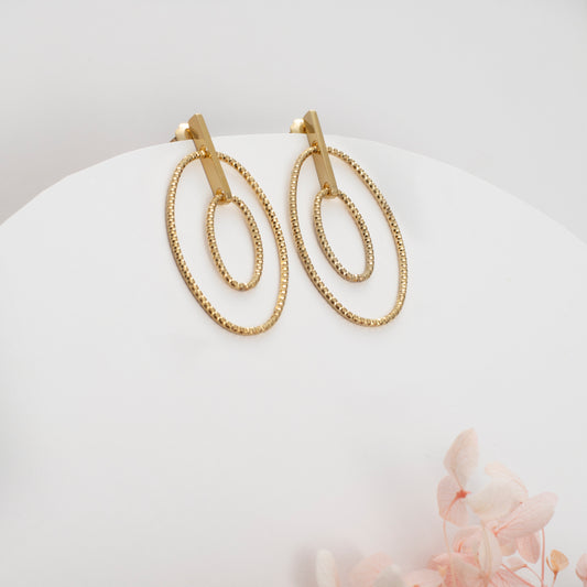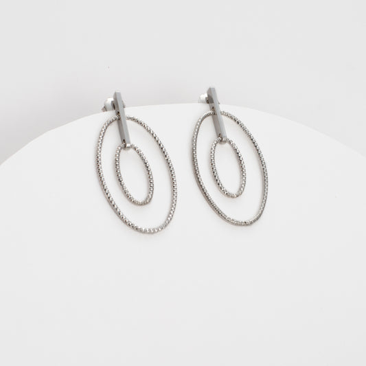 Silver Oval Hoop Earrings with Inner Golden Oval Accent