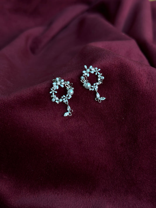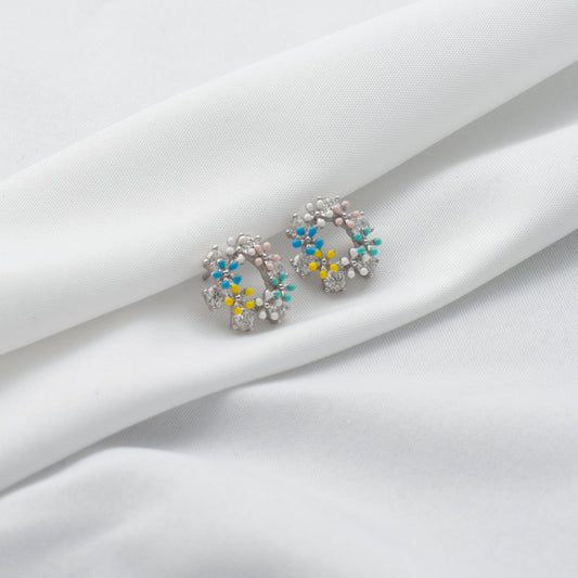 Multi-Floral Diamond Rose Gold & Silver Earrings