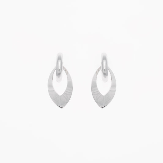 Italian Silver Hoop Earrings with Hanging Silver Petal Charm