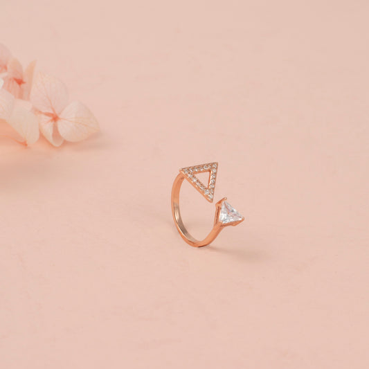 Rose Gold Geometric Triangle Ring with Diamond Accents