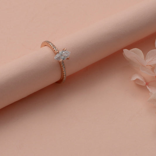 Rose Gold Marquise Diamond Ring with Pave Setting