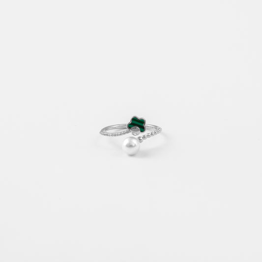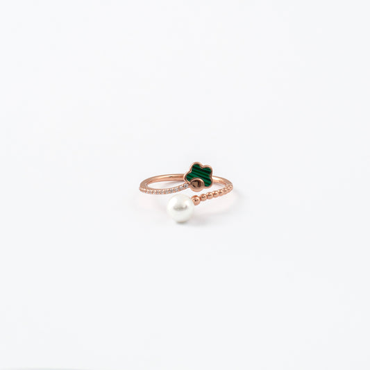Rose Gold Stacking Rings with Green Enamel and Pearl