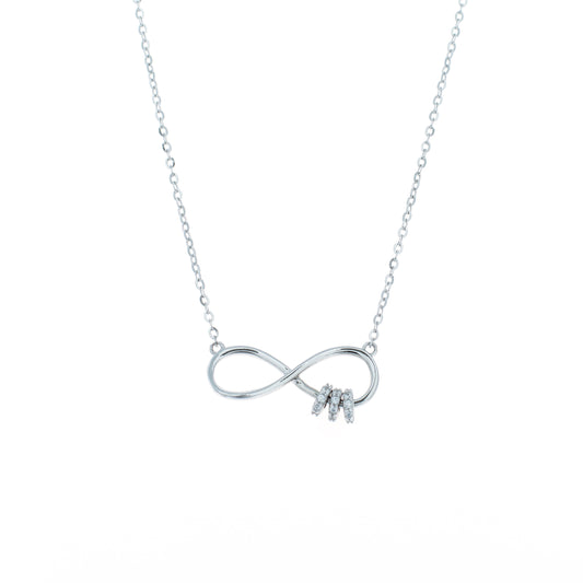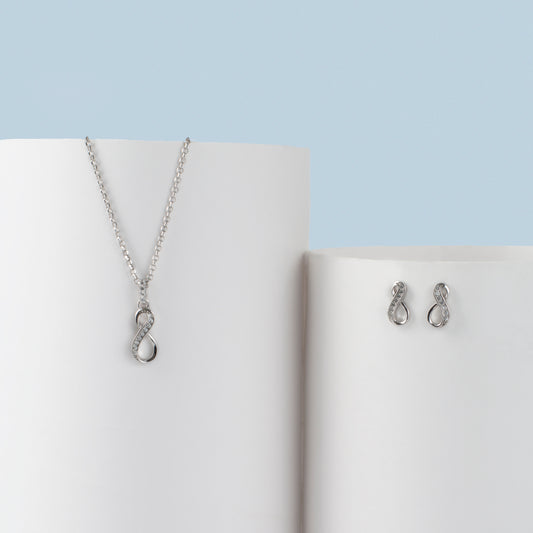 Silver Infinity Pendant and Earring Set with Diamond Accents
