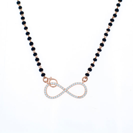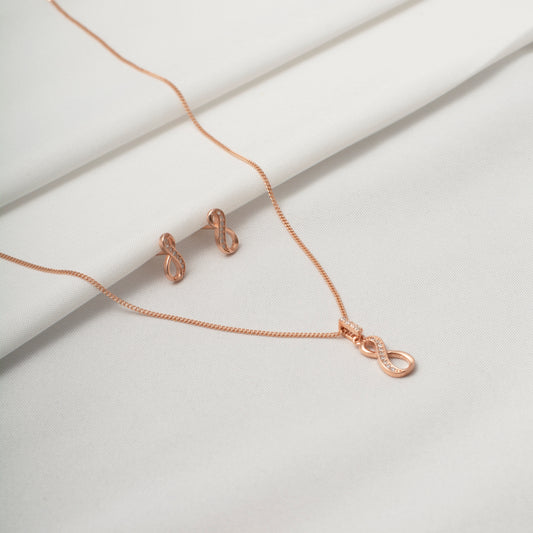 Rose Gold Infinity Pendant and Earring Set with Diamond Accents