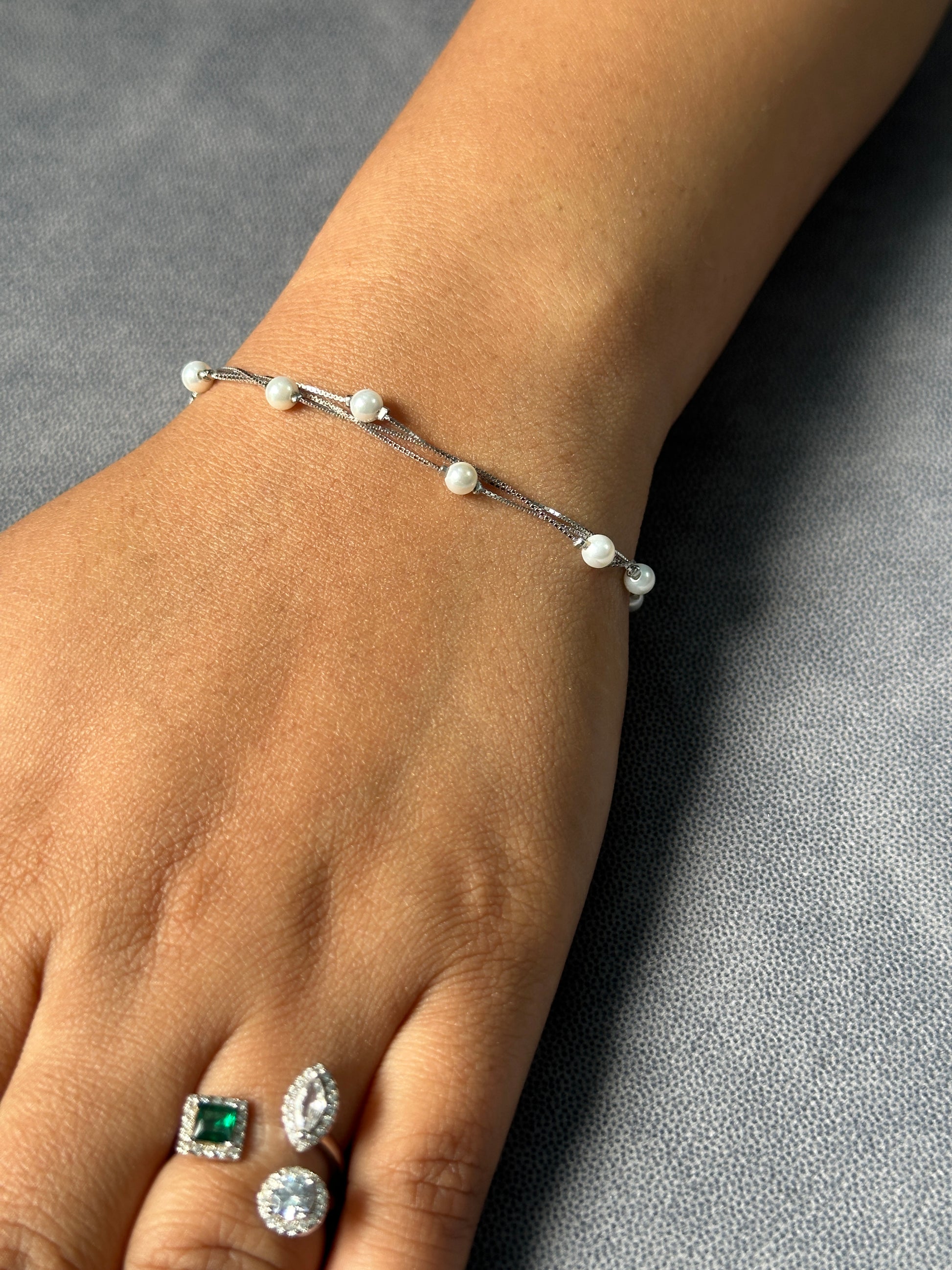 3 Layer SilverGlow Pearl Bracelet