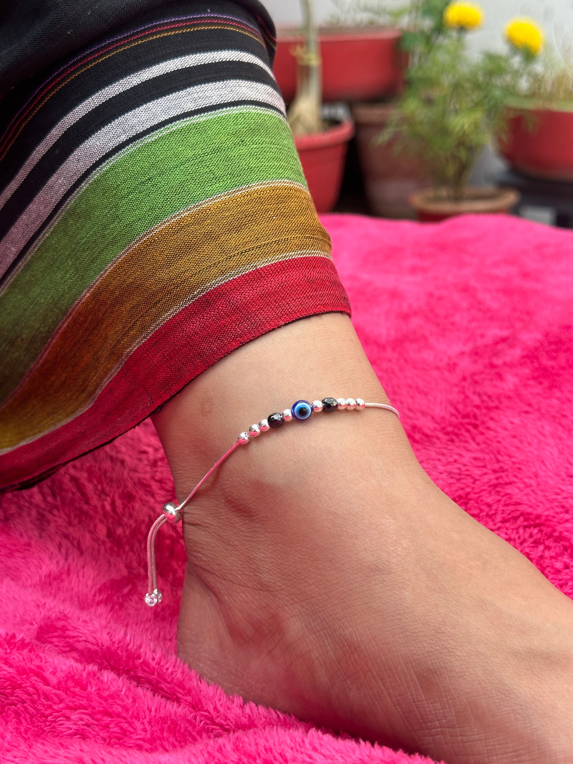 Adjustable evil eye Anklet 925 Silver
