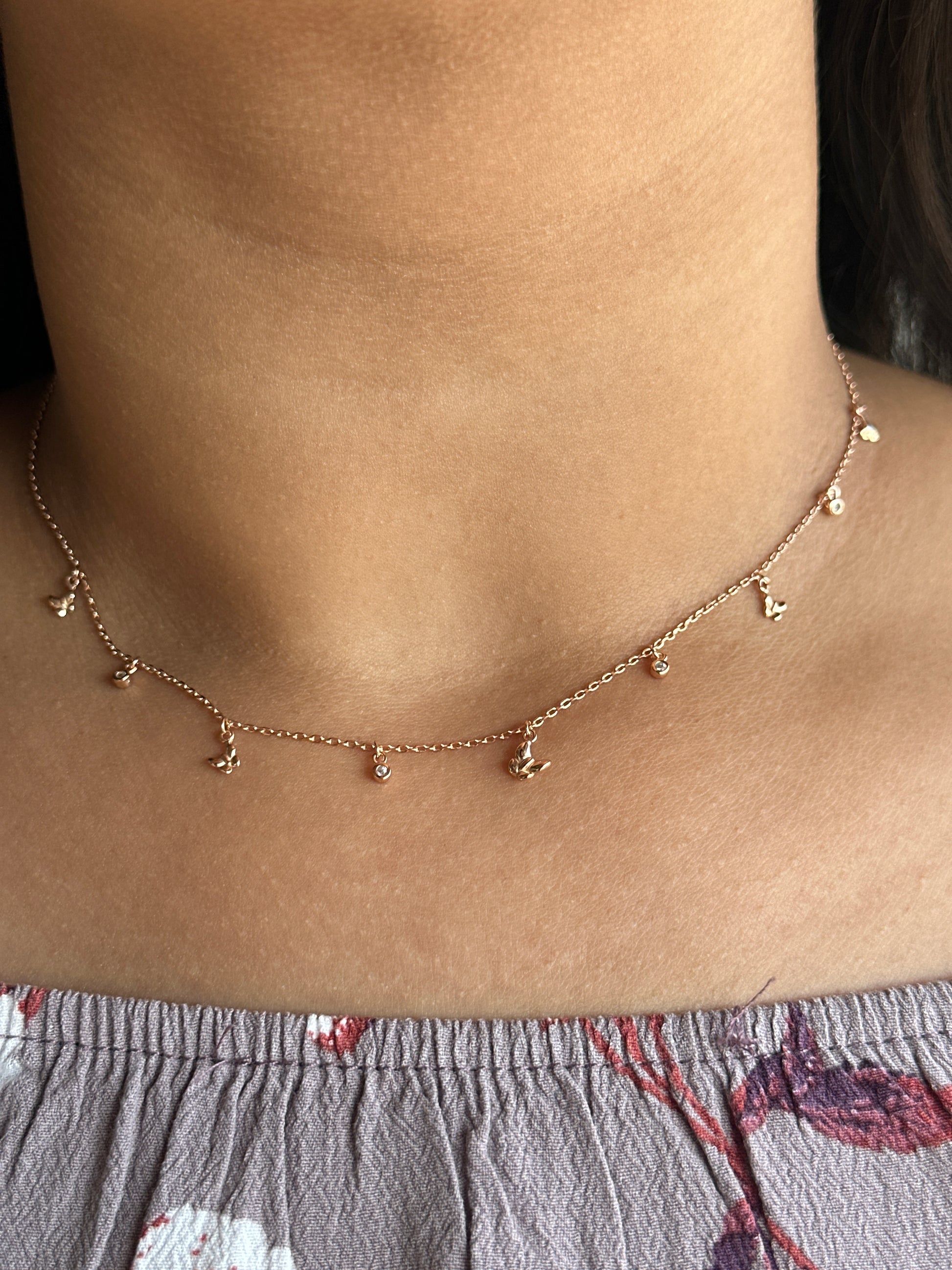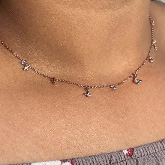 Rose Gold Butterfly and Crystal Charm Chain Pendent