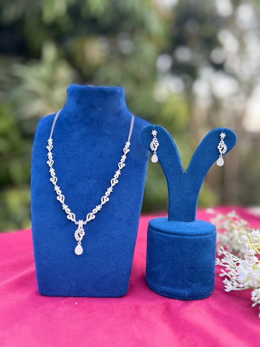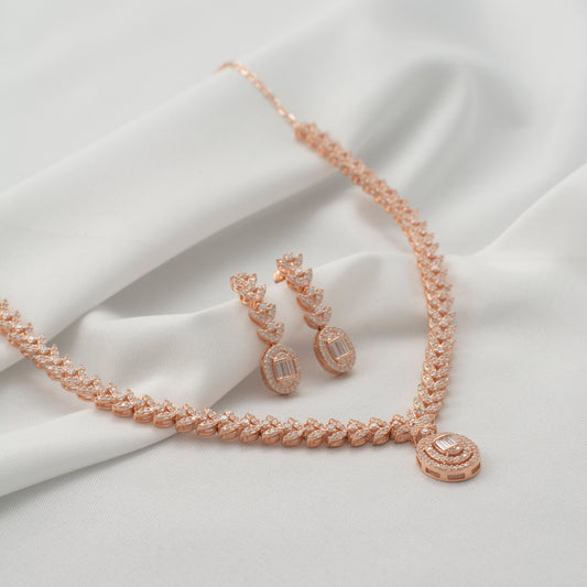 Rose Gold Necklace with Long Dangle Earrings