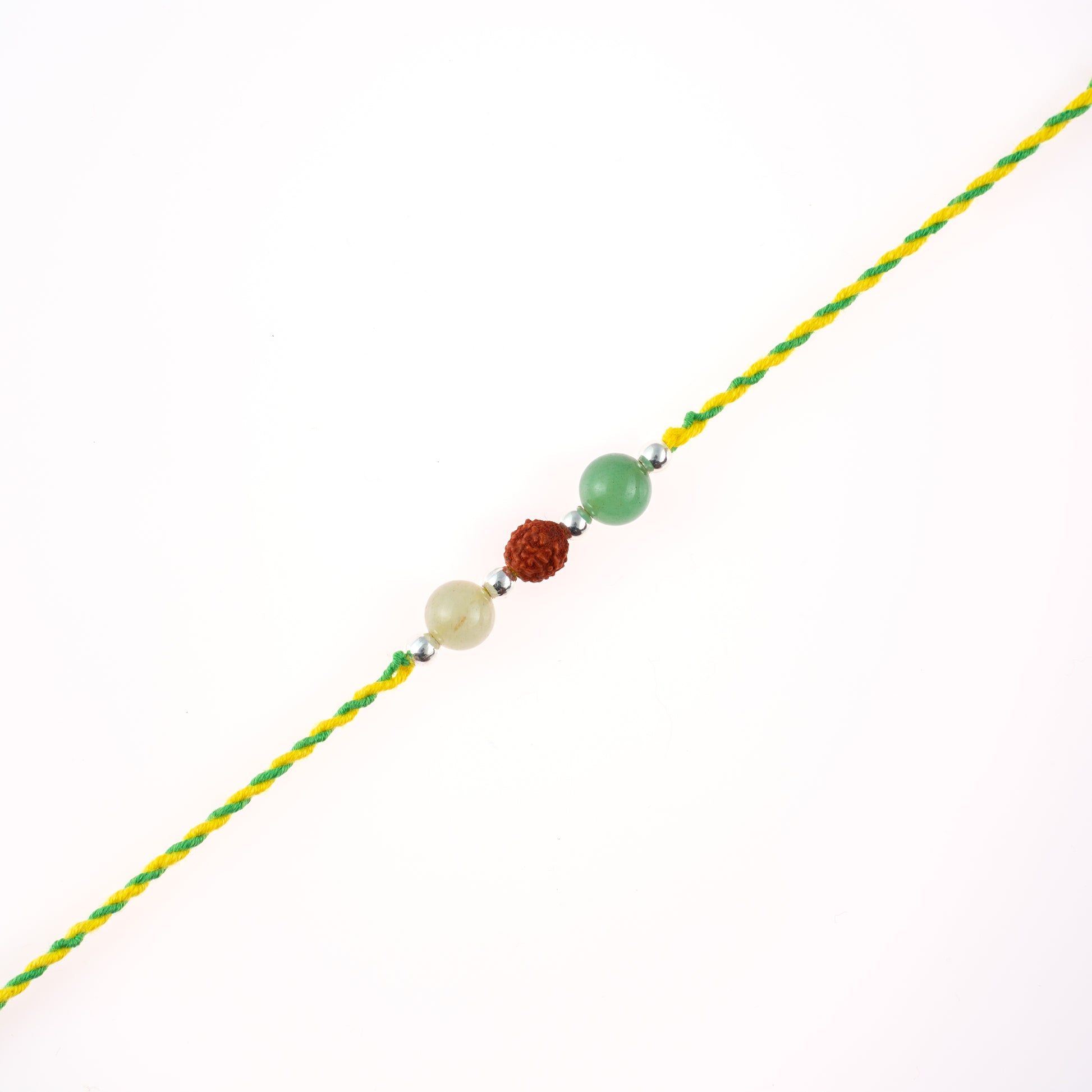 Divine Rudraksha and Floral Motif Silver Rakhi