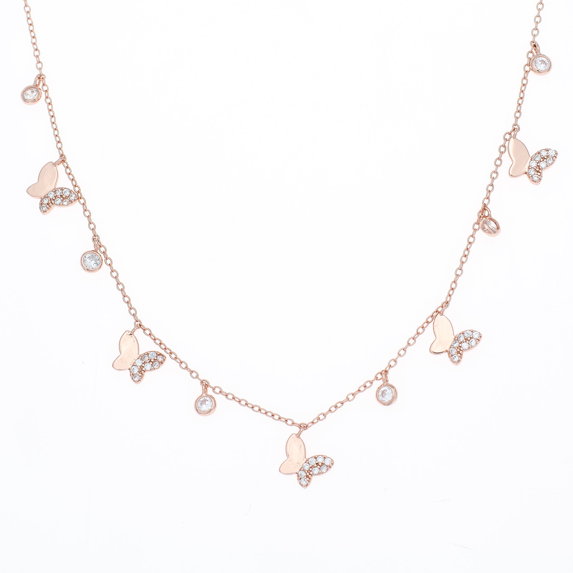 Rose Gold Butterfly and Crystal Charm Chain Pendent