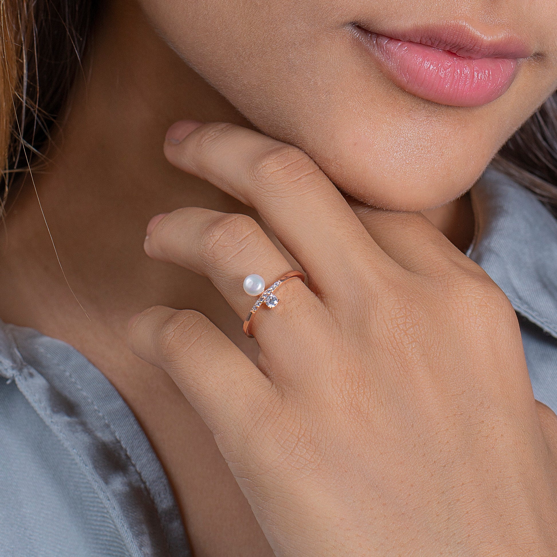 Rose Gold Pearl and Diamond Accent Ring