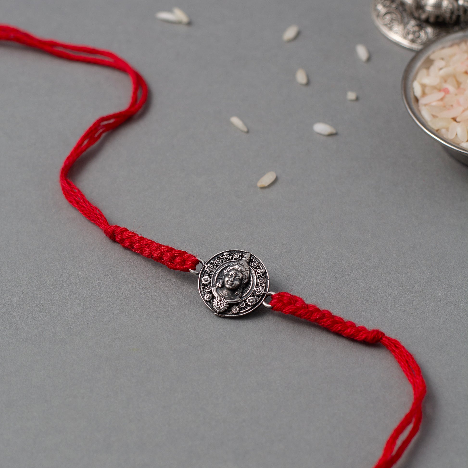 Divine Rudraksha and Floral Motif Silver Rakhi