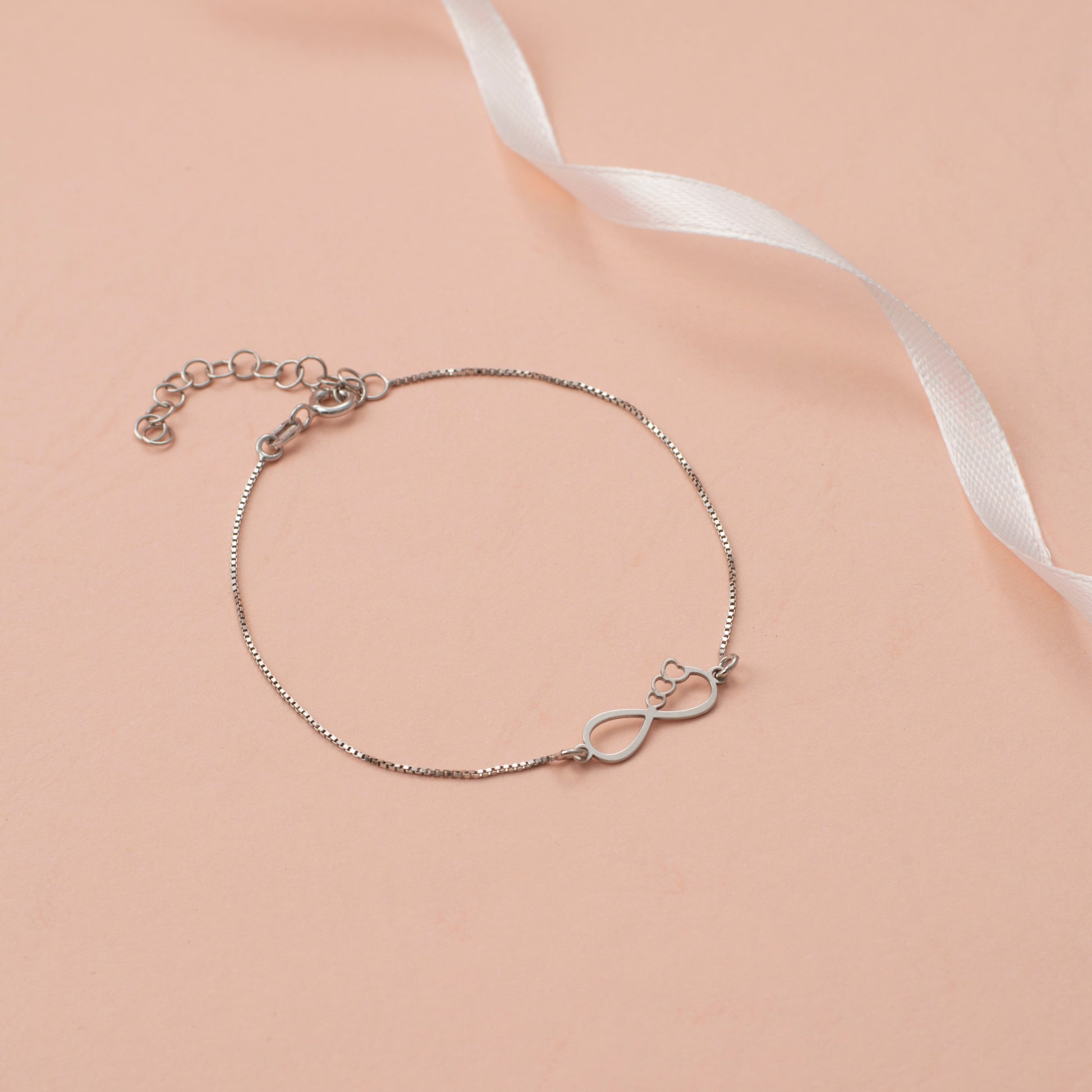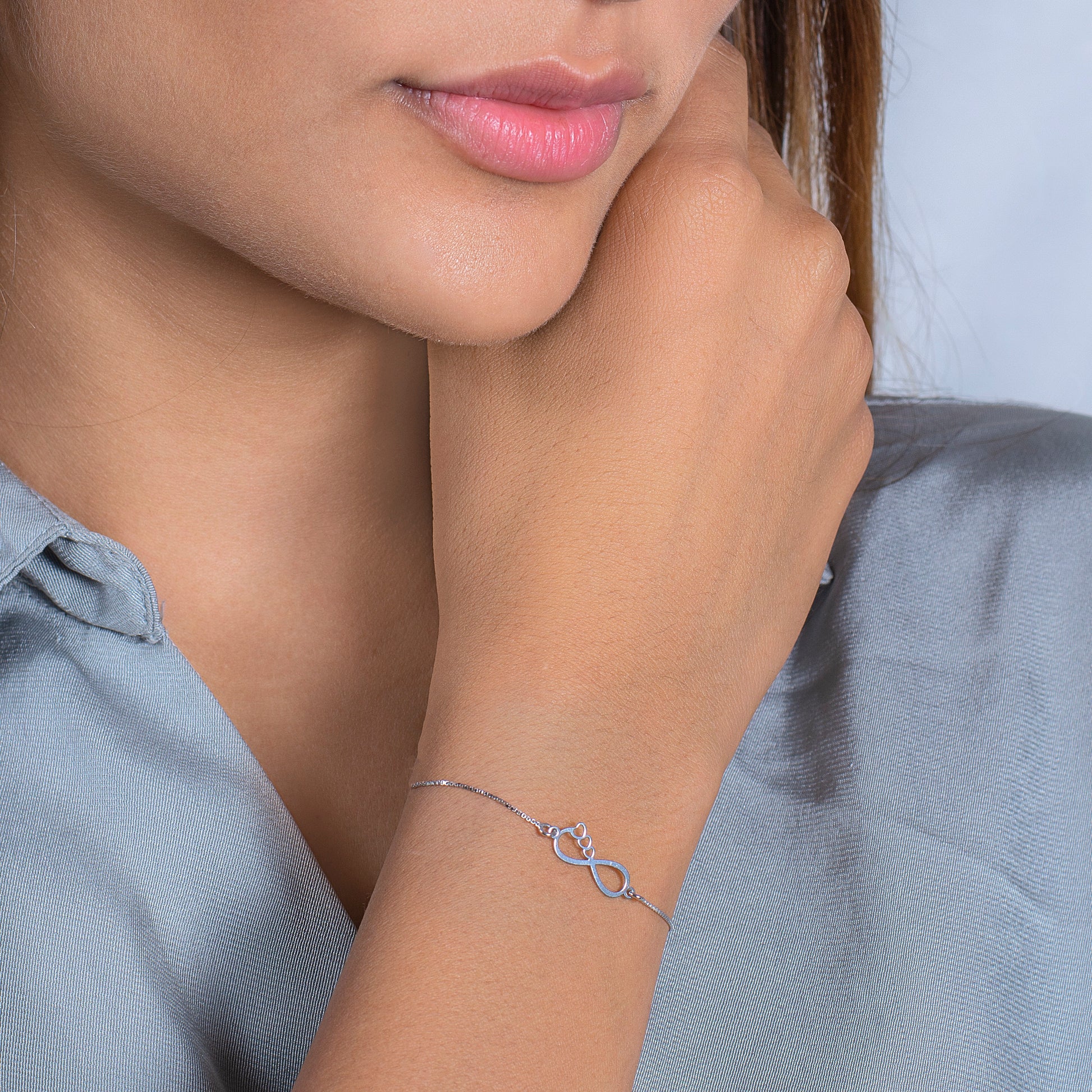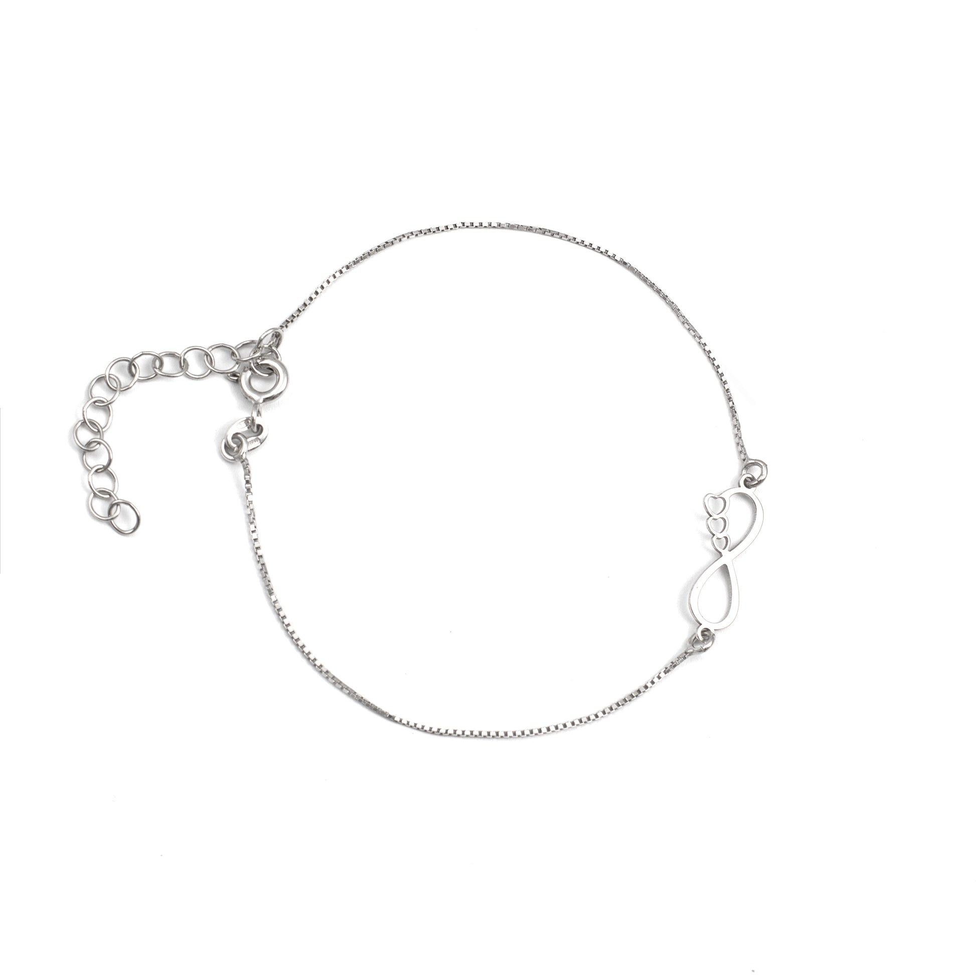 This Silver Infinity Hearts Bracelet beautifully captures the essence of everlasting love. The design features an elegant infinity symbol intertwined with heart shapes, all finely crafted in polished silver. This dainty bracelet is perfect for everyday wear or as a thoughtful gift, symbolizing unending love and commitment. The adjustable chain ensures a snug fit for any wrist size, making it a versatile and cherished addition to any jewelry collection. Whether worn alone or stacked with other bracelets, it adds a meaningful touch to any ensemble.