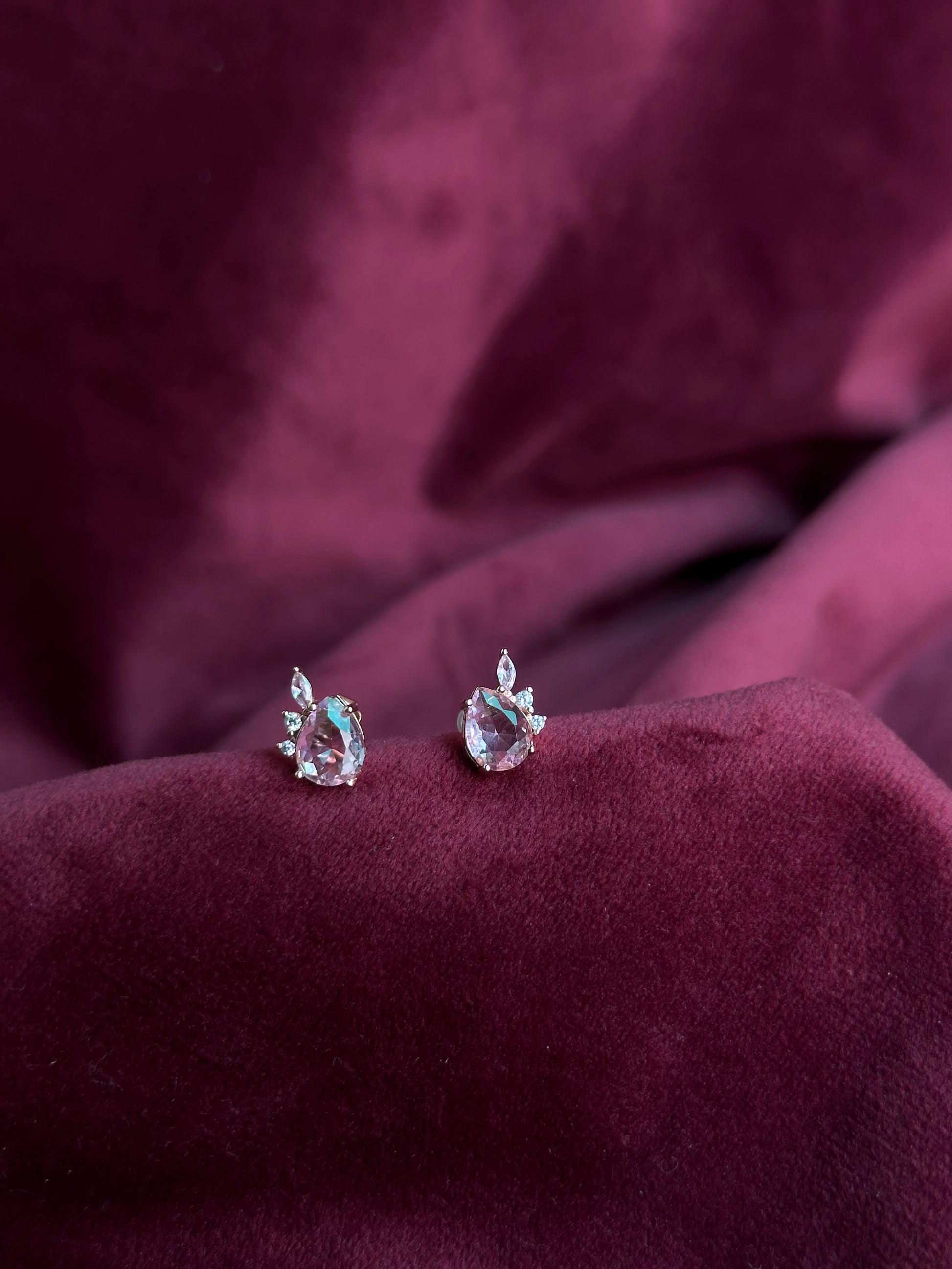 Multi-Floral Diamond Rose Gold & Silver Earrings
