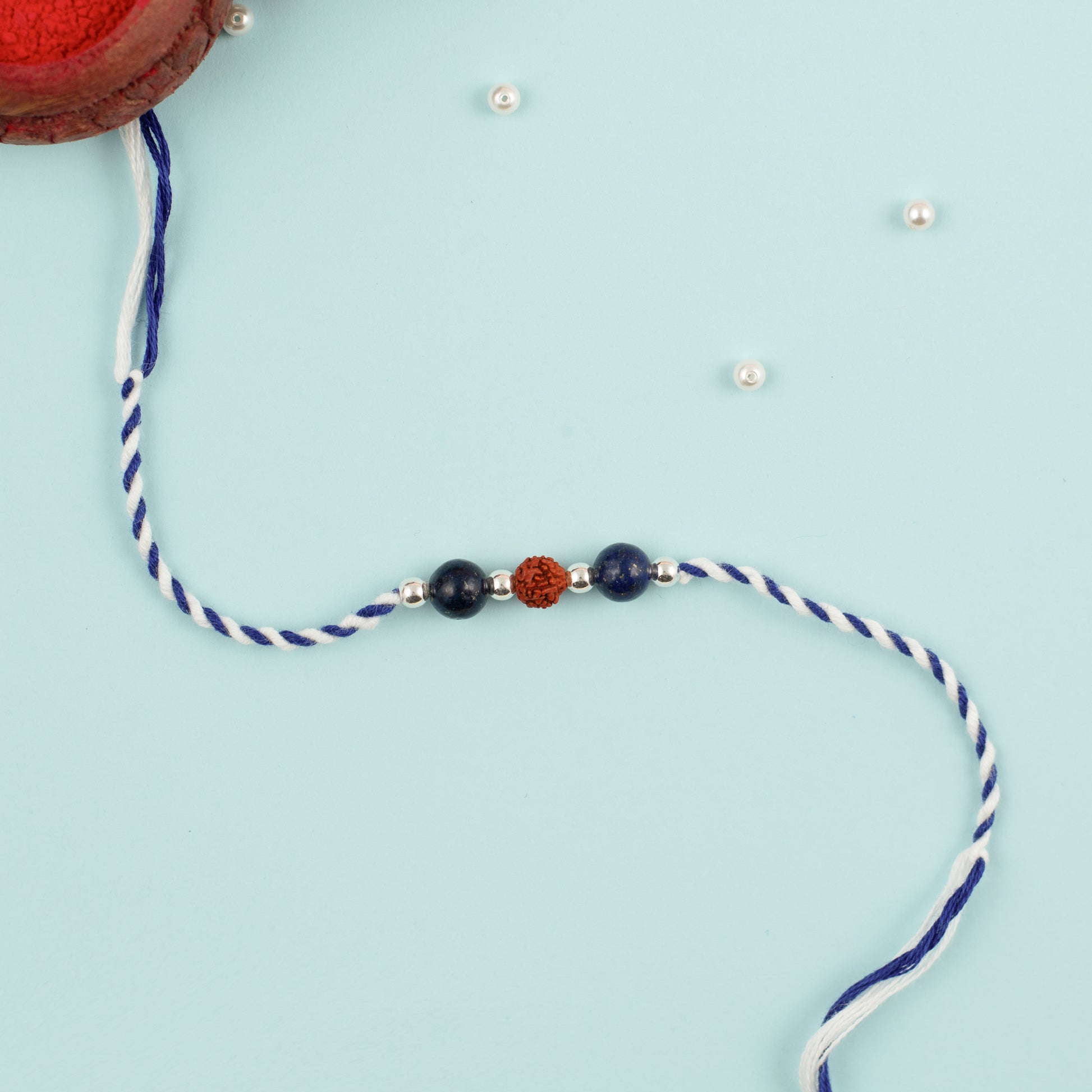 Divine Rudraksha and Floral Motif Silver Rakhi